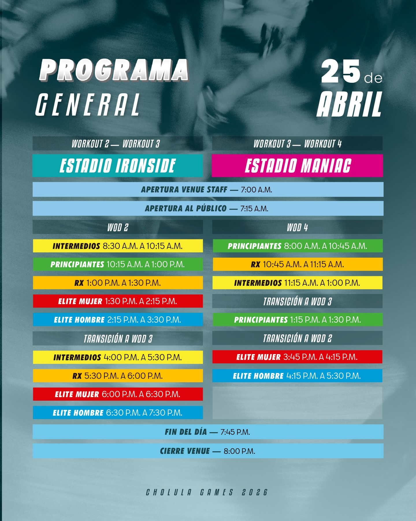 Cada escenario cuenta con sus horarios y heats definidos ⏱️, por lo que es importante revisar previamente la programación para conocer en qué momento y en qué espacio se llevará a cabo cada competencia 📍