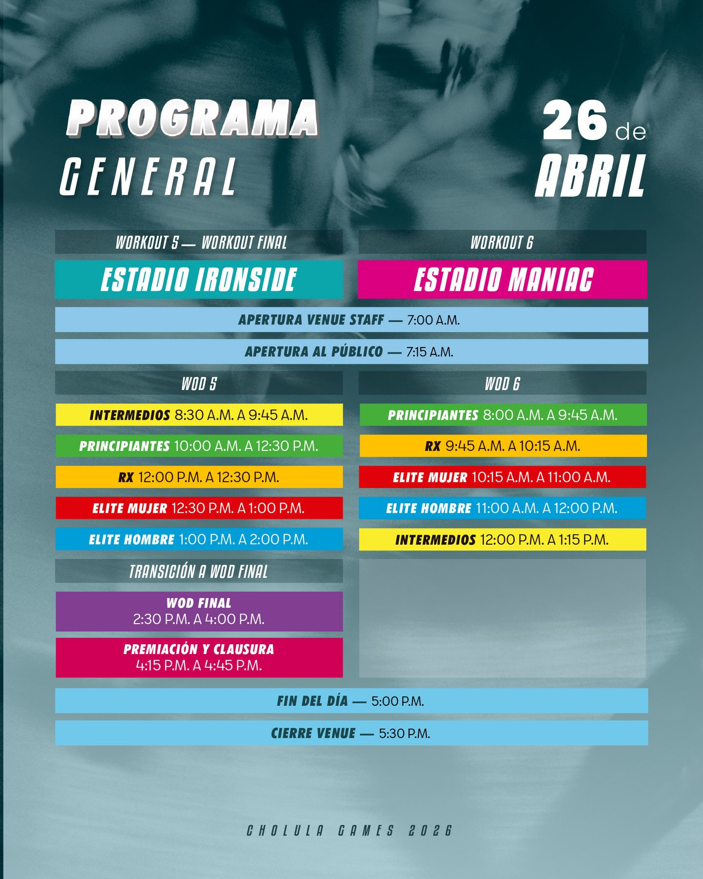 Cada escenario cuenta con sus horarios y heats definidos ⏱️, por lo que es importante revisar previamente la programación para conocer en qué momento y en qué espacio se llevará a cabo cada competencia 📍